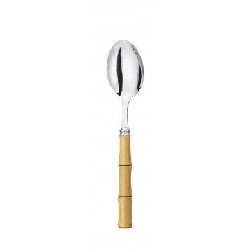 With the table spoon from the Byblos collection, tableware takes on its bamboo-inspired relief and natural charm and reveals an authentic decorative elegance at every place setting. Perfect for complete place settings, it brings comfort, balance and polish to both everyday meals and more elegant occasions. Its natural spirit allows the collection to accompany both modern table settings and more traditional presentations with the same ease. Its format feels natural in hand and contributes to a table service that is both practical, harmonious and visually refined. This designer table spoon extends the personality of the collection into the details and gives both daily meals and entertaining a refined, lasting finish.