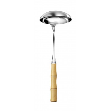 The soup ladle in the Byblos collection is defined by its bamboo-inspired relief and natural charm, creating an authentic decorative elegance that elevates the table without excess. Made for soups and veloutés, it allows generous, accurate serving with a gesture that feels fluid, comfortable and assured. Its natural spirit allows the collection to accompany both modern table settings and more traditional presentations with the same ease. Its format supports a stable grip and helps present broths and creamy soups with the same care as the rest of the meal. Choosing this designer soup ladle means opting for a chic, functional piece designed to enhance the table setting over time.
