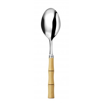 True to the spirit of the Byblos collection, this serving spoon combines its bamboo-inspired relief and natural charm with an authentic decorative elegance, giving the table a polished identity. Ideal for vegetables, pasta and shared dishes, it brings generosity and fluidity to service while keeping the table impeccably presented. Its natural spirit allows the collection to accompany both modern table settings and more traditional presentations with the same ease. Its useful size and comfortable balance make every serving gesture feel easy, neat and naturally elegant. Choosing this designer serving spoon means opting for a chic, functional piece designed to enhance the table setting over time.