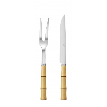 The carving set in the Byblos collection is defined by its bamboo-inspired relief and natural charm, creating an authentic decorative elegance that elevates the table without excess. Designed for carving meat and poultry, it brings precision, control and elegance to festive service and carefully presented meals. Its natural spirit allows the collection to accompany both modern table settings and more traditional presentations with the same ease. Its coordinated pieces support a confident cutting gesture and help turn carving into a truly polished part of the table experience. A true tableware piece, this designer carving set combines style, comfort and coherence for everyday meals as well as special occasions.