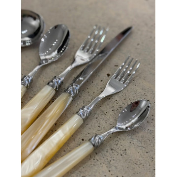 Discover the Diana dessert fork, combining elegance and comfort with its ergonomic acrylic resin handle. Its solid twisted ferrule provides both strength and refinement, making this utensil a perfect choice for your gourmet meals. With its modern, functional design, this dessert fork offers a comfortable grip and long-lasting durability. Ideal for elevating your desserts with style and practicality.