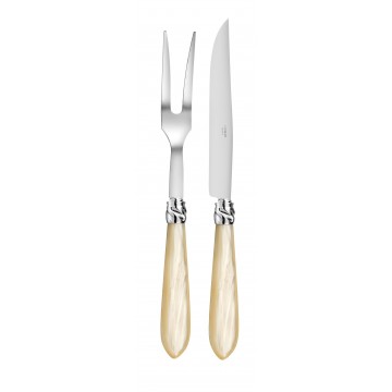 With the carving set from the DIANA collection, tableware takes on its twisted ferrule and precious allure and reveals a decorative refinement at every place setting. Designed for carving meat and poultry, it brings precision, control and elegance to festive service and carefully presented meals. Available in several colours, the collection lends itself to both refined daily dining and more ceremonial table settings. Its coordinated pieces support a confident cutting gesture and help turn carving into a truly polished part of the table experience. This designer carving set extends the personality of the collection into the details and gives both daily meals and entertaining a refined, lasting finish.