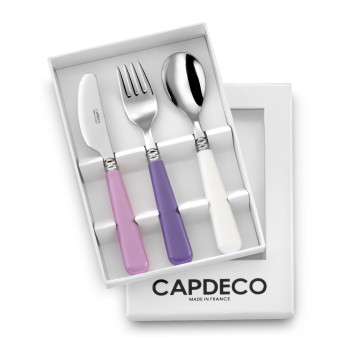The children's cutlery set in the Helios collection is defined by its timeless look as a reimagined classic, creating a lasting elegance that elevates the table without excess. Created to accompany children's first independent meals, it combines reassuring ergonomics with a polished, gift-worthy presentation. Its child-friendly format supports first autonomous meals while preserving the elegance and perceived quality expected from fine tableware. Its accessible format encourages good table habits while maintaining the refinement expected from beautifully made tableware. This designer children's cutlery set extends the personality of the collection into the details and gives both daily meals and entertaining a refined, lasting finish.