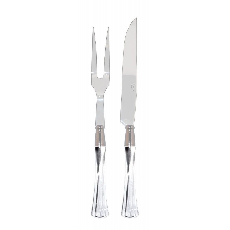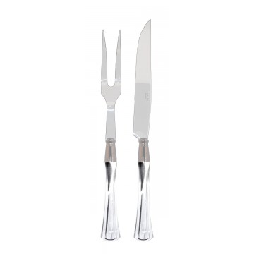 The carving set from the VENUS collection stands out for its luminous transparency and crystal effect, bringing delicate decorative reflections to the table. Designed for carving meat and poultry, it brings precision, control and elegance to festive service and carefully presented meals. Available in a range of tones, the collection brings light, depth and personality to the table without overwhelming the décor. Its coordinated pieces support a confident cutting gesture and help turn carving into a truly polished part of the table experience. This designer carving set extends the personality of the collection into the details and gives both daily meals and entertaining a refined, lasting finish.