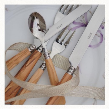Cuchara de mesa Helios madera de olivo destaca por su mango de madera de olivo y sus matices vivos. Acompaña el servicio diario con equilibrio y aporta una presencia refinada a la mesa en cualquier ocasión. Su diseño bien proporcionado refuerza una mesa elegante, contemporánea y agradable de usar.